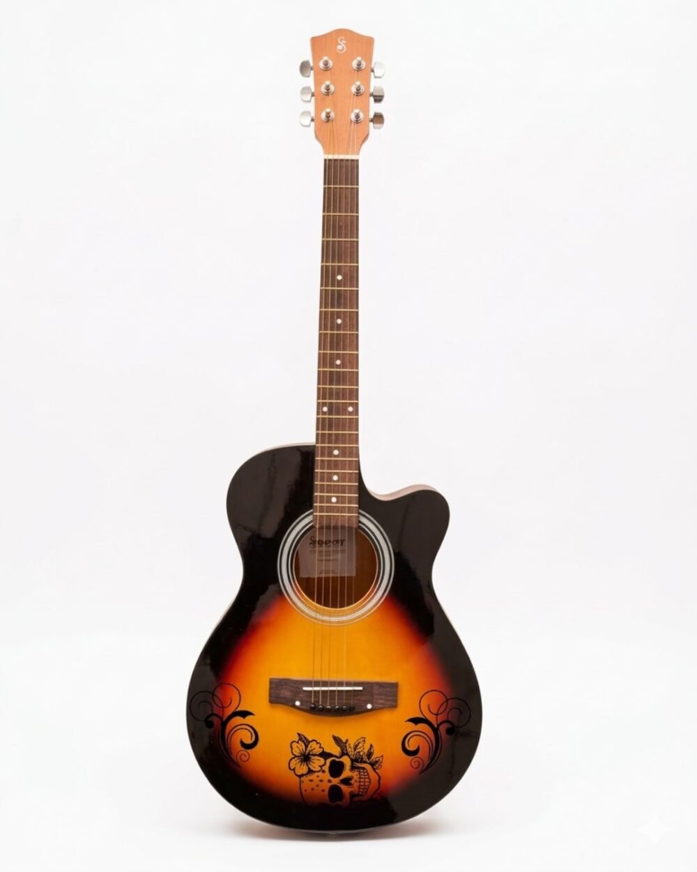 The SQUAVER 39″ Cutaway Acoustic Guitar in Red Burst finish combines classic acoustic tone with a bold, eye-catching design. Built from durable laminated wood, it delivers a warm, balanced sound while standing up to everyday practice and performance.