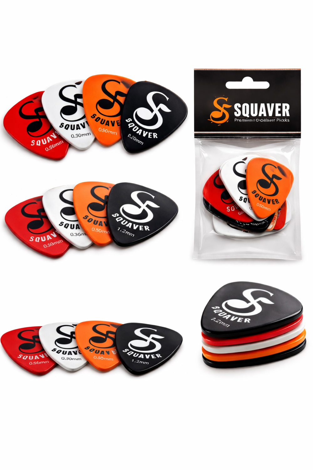 Upgrade your playing experience with the Squaver Premium Guitar Plectrum Pack, designed for precision, comfort, and versatility. This set of 5 high-quality picks comes in multiple thicknesses, making it perfect for beginners to professionals.